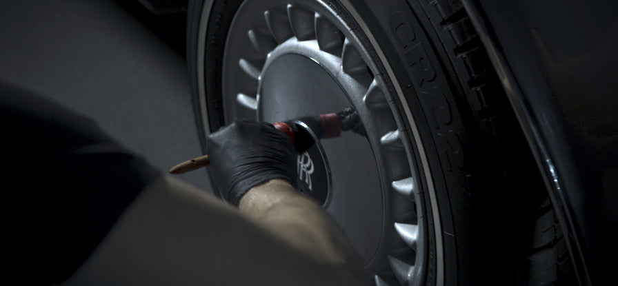Pulvérisez notre nettoyant Wheel Spray Forte sur les jantes et répartissez le produit avec le pinceau Wheel.