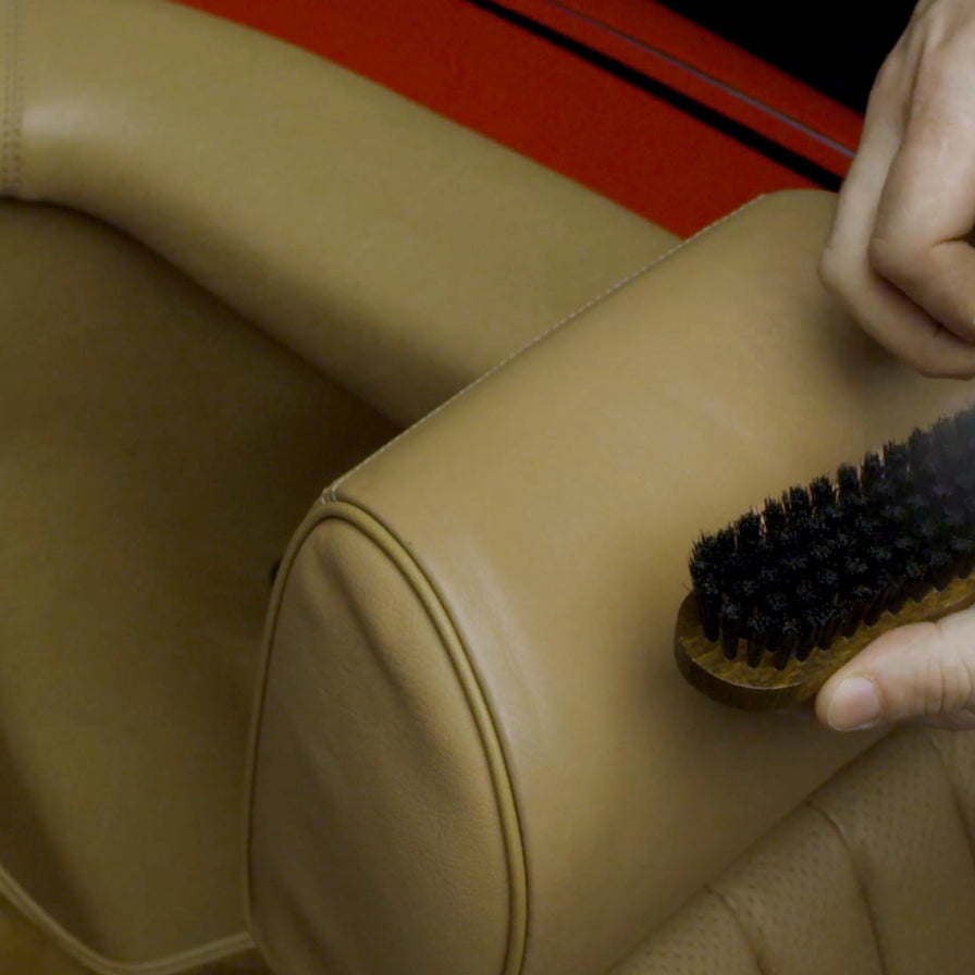 2. Pulvérisez Leather Cleaner sur la brosse de nettoyage Swissvax et travaillez en mouvement circulaire.